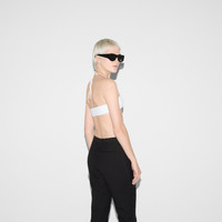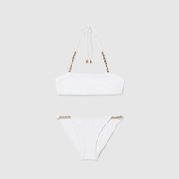This halterneck bikini appears as part of the Cruise 2025 collection. Crafted from a sparkling jersey, it's enriched with chain details and Round Interlocking G hardware. - White sparkling jersey - Round Interlocking G hardware - Lined - Halterneck - Chain detail - Please note that intimates, including swimwear, tights, socks and lingerie can only be returned in new condition. Items should be unworn, in their original packaging and with all labels attached. - Laces that tie at neck - Made in Italy - The model is 5'8" and is wearing size small