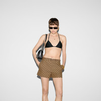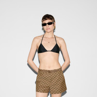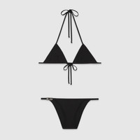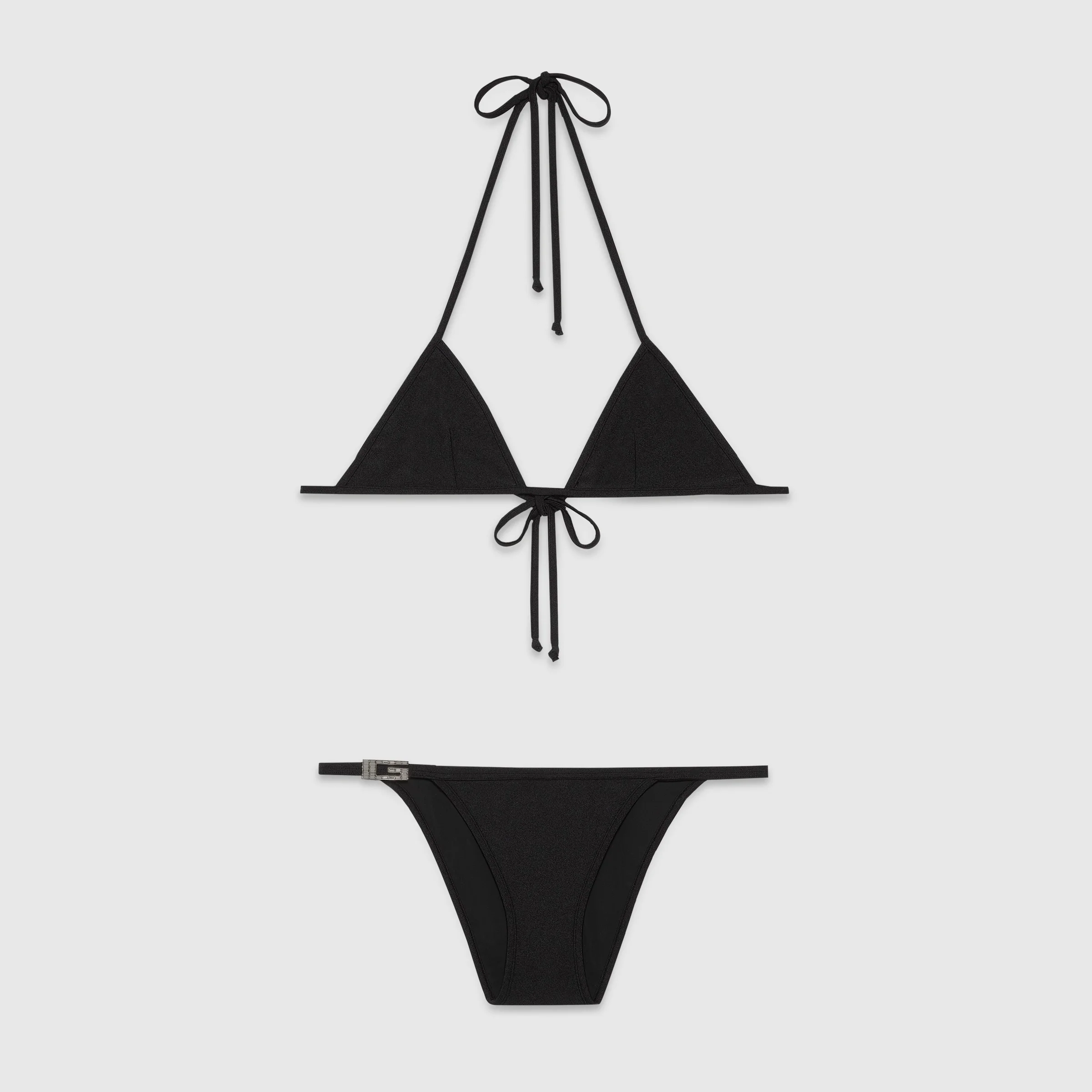 The Pre-Fall 2023 collection channels that warm-weather feeling with a series of items made with the holiday seasons in mind. Part of the selection, this bikini is crafted from black sparkling jersey and enriched with a sparkling G detail across the hip. - Black sparkling jersey - Laces that tie at the back and at the neck - G bold detail with crystals - Please note that intimates, including swimwear, tights and lingerie can only be returned in new condition. Items should be unworn, in their original packaging and with all labels attached. - The model is 5'7" and is wearing size extra small