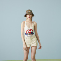 Gucci's Pre-Fall 2023 collection blends archival influence with functionality. The result is a contemporary narrative interspersed with traditional elements and symbols of the House. This elegant swimsuit has been crafted from ivory sparkling jersey and enriched with criss cross shoulder straps and a statement Interlocking G 1921 Gucci print. - Ivory sparkling jersey - Gucci Interlocking G and 1921 ribbon print - Criss cross shoulder straps - Please note that intimates, including swimwear, tights and lingerie can only be returned in new condition. Items should be unworn, in their original packaging and with all labels attached. - The model is 5'7" and is wearing size extra small