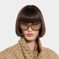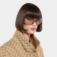 Introducing Spring Summer 2026. Distinctive eyewear shapes are enriched with emblematic signatures that create a fil rouge in the collection. Stated with transparent beige injection frames, these square frame sunglasses reveal a Gucci logo across the temples. - Transparent beige injection frame - Transparent beige injection temples with Gucci logo - Brown lens - 100% UVA/UVB protection - GG2176S - Temple length: 4.5"; Lens height: 2.1"; Nose bridge length: 0.5" - Frame height: 2.3"; Frame width: 5.6"; Hinge to hinge: 5" - Made in Japan - The eyewear case in black is complete with a magnetic closure and GG motif interior.
