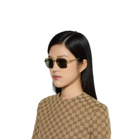 The Pre-Fall 2025 eyewear collection blends statement silhouettes from the archives with a contemporary touch. These square frame sunglasses are stated in light gold-toned metal with a cut-out Gucci logo detail. - Shiny light gold-toned metal frames - Shiny light gold-toned metal temples with cut-out Gucci logo - Solid grey lens - 100% UVA/UVB protection - GG1937S - Temple length: 4.9"; Lens height: 1.8", Nose bridge length: 0.6" - Frame height: 1.8"; Frame width: 5.7"; Hinge to hinge: 5.3" - The glasses will arrive in a velvet case, available in a range of six jewel-toned colors and paired with a coordinating satin lining. The case color will be individually selected for each pair of glasses and comes with a matching satin flannel pouch and ivory microfiber cloth.