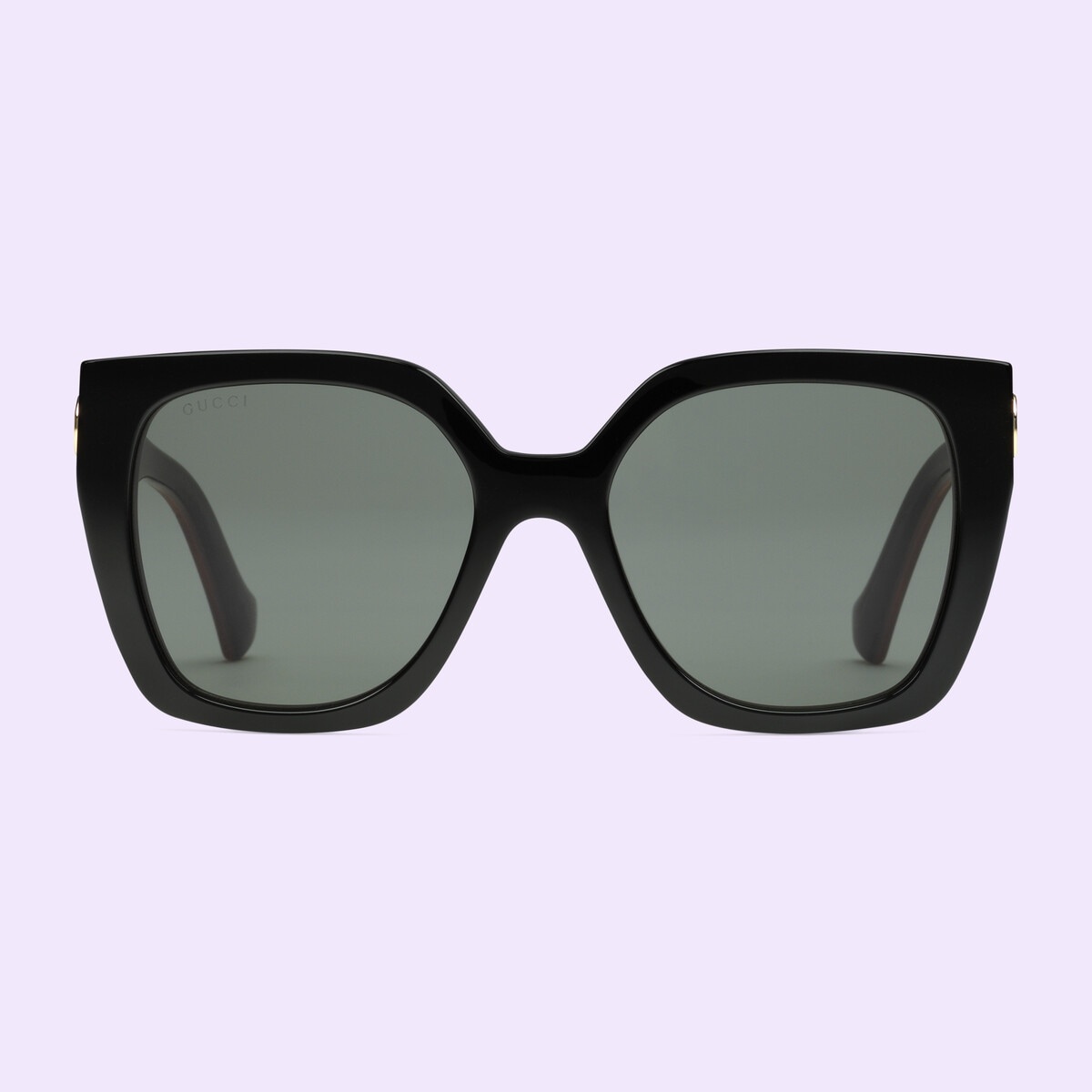 Crafted from black acetate, these sunglasses are characterized by a square-frame. A brown stripe detail features on the temples, while the signature Interlocking G appears in gold as a subtle detail. - Shiny black acetate frame - Shiny black and dark brown acetate temples with gold-toned Interlocking G detail - Solid grey lens - 100% UVA/UVB protection - Frame height: 2.3"; Frame Width: 5.7" - GG1300S - Temple length: 5.7"; Lens height: 2", Nose bridge length: .7" - The glasses will arrive in a velvet case, available in a range of six jewel-toned colors and paired with a coordinating satin lining. The case color will be individually selected for each pair of glasses and comes with a matching satin flannel pouch and ivory microfiber cloth.