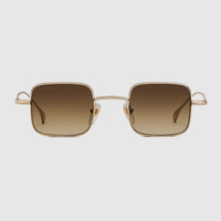 The Cruise 2025 eyewear collection blends an essential silhouette with signature motifs. These square sunglasses are accentuated by an engraved Gucci logo. - Shiny gold-toned metal frame with allover GG motif - Shiny gold-toned metal temples with engraved Gucci logo - Double gradient brown and light brown lens - 100% UVA/UVB protection - GG1813S - Temple length: 5.7"; Lens height: 1.4"; Nose bridge length: 0.9" - Frame height 1.4"; Frame width 4.9"; Hinge to hinge 4.7" - Made in Japan - The eyewear case in the House’s signature Rosso Ancora red hue is complete with a magnetic closure and white interior.