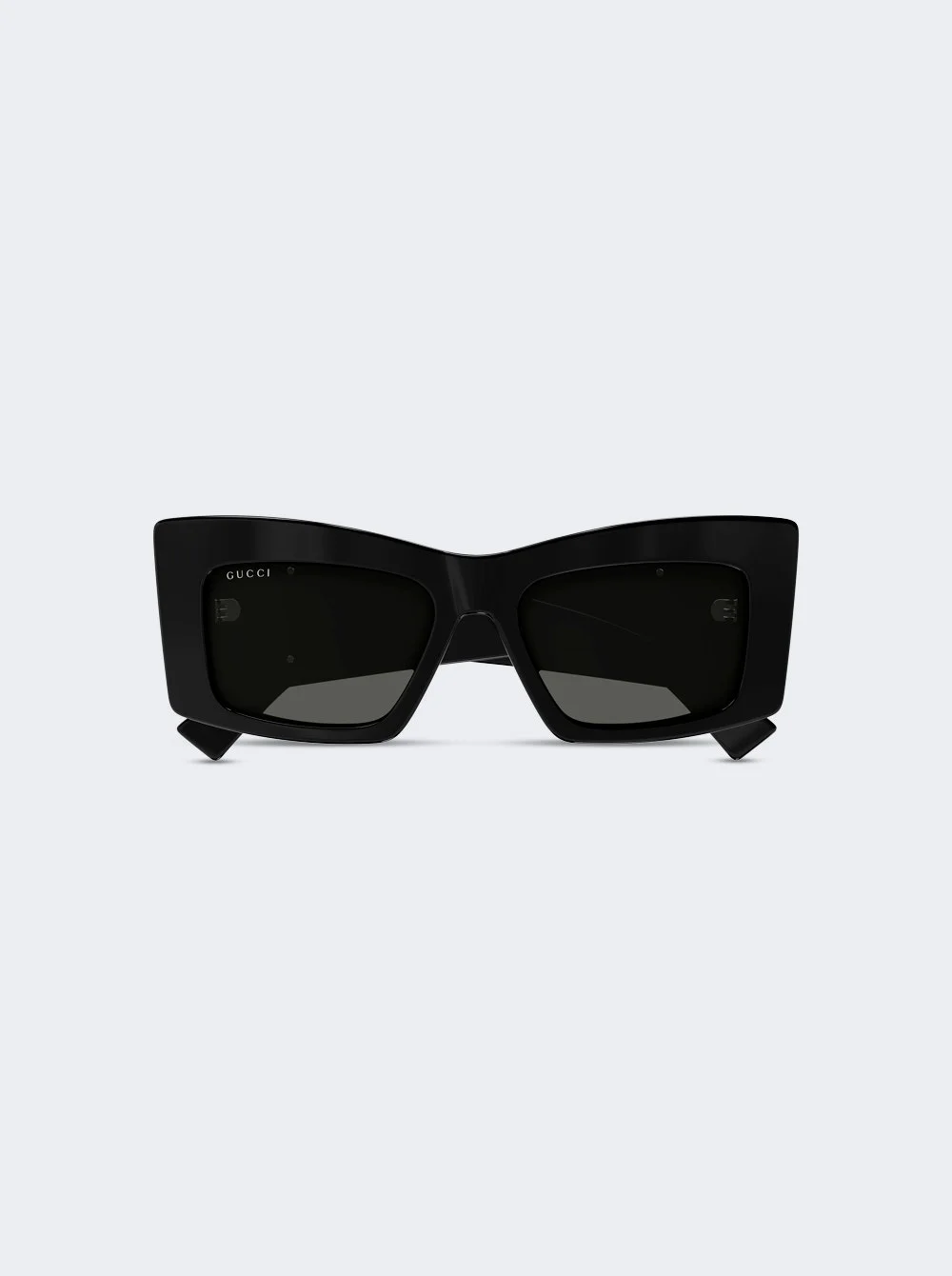 Details - Square, shiny black acetate frame - Large interlocking G detail on the temples - Shiny black acetate frame - Solid grey lens - 100% UVA/UVB protection - Temple length: 5.5"; Lens height: 1.5"; Nose bridge length: 0.7" - Frame height: 2"; Frame width: 5.8"; Hinge to hinge: 5" - Made in Italy Brand Style: GG1842S-001 Designer/Brand: GUCCI