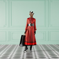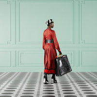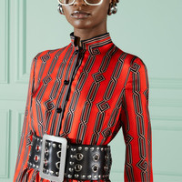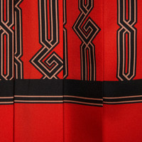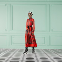 A mid-length dress crafted from square G chain print orange and black silk. With an eye to the theme of seasonality first seen in Gucci Aria, a proposal of daywear and formal wear is presented in new fabrics, patterns and fits, mix and matched with sensual and hyper-feminine silhouettes that take on a '70s influence. - Square G chain print orange and black silk - Half lined - High neck - Long sleeves - Detachable self-tie belt - Pleat detail - Front button closure - Length: 51.2" based on a size 40 (IT) - Made in Italy - The product shown in this image is a size 40 (IT)
