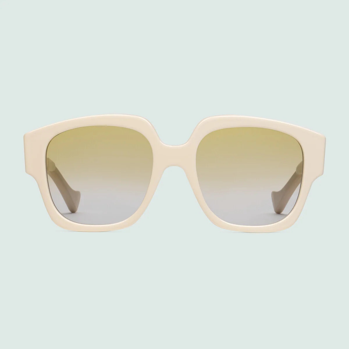 Inspired by the '80s, these square shaped sunglasses are defined by the white acetate frame and gradient yellow lens. The signature Interlocking G detail on the temples give a subtle nod to the House's heritage. - White acetate frame - White acetate temples with Interlocking G - Gradient yellow lens - 100% UVA/UVB protection - Temple length: 5.5", lens height:2", nose bridge length: .8" - Frame height: 2.5"; Frame width: 2.4" - Made in Italy - The glasses will arrive in a velvet case, available in a range of six jewel-toned colors and paired with a coordinating satin lining. The case color will be individually selected for each pair of glasses and comes with a matching satin flannel pouch and ivory microfiber cloth.