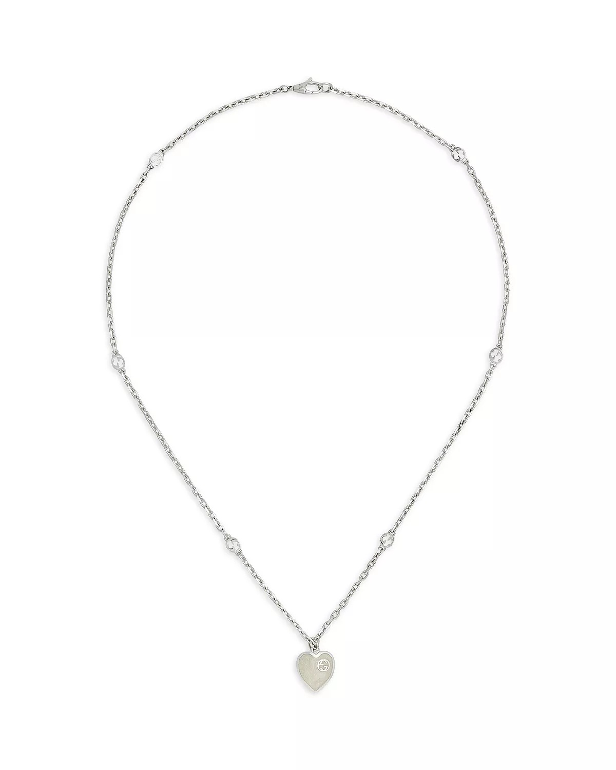 SIZE & FIT - Founded in Florence in 1921, Gucci is one of the world's leading luxury fashion brands, with a renowned reputation for creativity, innovation, and Italian craftsmanship. - Reflecting and defining the styles and attitudes of each era, Gucci has influenced fashion and culture for more than a century. PRODUCT DETAILS - From the Heart collection - An interlocking G heart pendant, presented in pearlescent enamel on a sterling silver chain - Enamel - Sterling silver - 19.7"L - Lobster clasp closure - Photo may have been enlarged and/or enhanced - Imported Web ID: 4935792