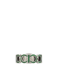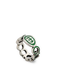 Product code: 94800811 Behold Gucci's exquisite Interlocking G Ring, a testament to the brand's commitment to luxury craftsmanship and artisanal elegance. Beautifully crafted from sterling silver and accented with enamel, this ring features a captivating cut-out design adorned with the iconic house logo and the Interlocking G symbol. With its sleek and sophisticated design, this ring is a statement piece that effortlessly elevates any ensemble, making it suitable for both formal and casual occasions. Whether worn alone or stacked with other rings, the Gucci Interlocking G Ring will make a bold and stylish statement. It is the perfect accessory to enhance everyday ensembles or to complement your evening attire. Please store in the original packaging or a soft pouch to avoid damage.