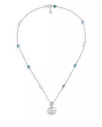 SIZE & FIT - Founded in Florence in 1921, Gucci is one of the world's leading luxury fashion brands, with a renowned reputation for creativity, innovation, and Italian craftsmanship. - Reflecting and defining the styles and attitudes of each era, Gucci has influenced fashion and culture for more than a century. PRODUCT DETAILS - From the Marmont collection - Beautiful stones are stationed along the chain leading to a the double G logo pendant - Mother-of-pearl; blue topaz; turquoise resin - Sterling silver - 15.5-16.5"L - Lobster clasp closure - Almost all gemstones and blue and black diamonds have been treated to enhance their beauty and require special care - Photo may have been enlarged and/or enhanced - Some silver jewelry may be surface-coated with rhodium to enhance metal color and shine; it may wear off over time requiring replating. - Made in Italy Web ID: 3978124