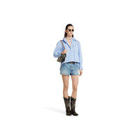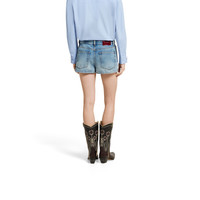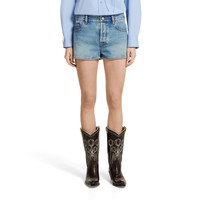 The Pre-Fall 2025 collection perfectly blends versatile textures and sophisticated detailing. Classic denim pieces with distinctive labels or embroideries continue to evolve to reflect the changing seasons. This pair of everyday denim shorts have the Gucci Rosso Ancora naplak label on the back. - Light blue stonewashed certified cotton denim - Gucci metal button - Gucci Rosso Ancora naplak label - Five-pocket style - Belt loops - Button and zip closure - Made in Italy