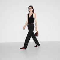 Grey ushers in Pre-Fall mood with sophisticated sets that reveal complex internal constructions and subtle details behind a seemingly somber surface. These straight fit pants are presented in a washed denim and feature side slits with an iron crease. A Gucci Rosso Ancora naplak label adds a pop of color to the silhouette. - Grey washed denim - Gucci Rosso Ancora naplak label - Belt loops - Five pocket style - Side slits: 4" with ironed crease - Frayed hem - Waist: 16.1"; based on a size 26 - Hips: 19.6"; based on a size 26 - Button and zip closure - Straight fit - Length: 43.8 " based on a size 26 (IT) - Leg opening: 7.87"; based on a size 26 - Made in Italy - The product shown in this image is a size 26 (IT)