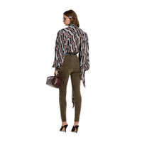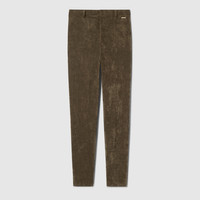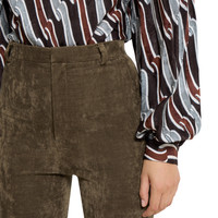 The Cruise 2026 women's ready-to-wear collection reinterprets 1990s modernism with sleek silhouettes, anchored in monochromatic black or white, and effortless separates complete with leggings. This pair of leggings appears in brown stretch velvet. - Brown stretch velvet - Unlined - Belt loops - Front zip closure - Length: 40.5"; Hem width: 10.3"