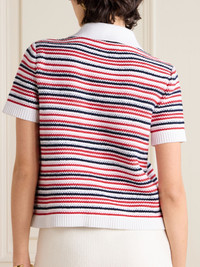 Striped jacquard-knit cotton-blend polo shirt Multi