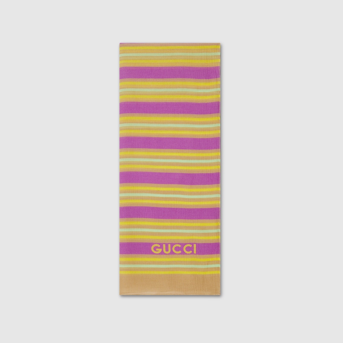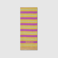 Inspired by the summer spirit and beach clubs on the Italian coast, this item is part of Gucci Lido. A fresh interpretation of this new season's palette. This silk cotton scarf is defined by colorful stripes and completed by the Gucci logo detail on the corners. - Striped print multicolor silk cotton - Gucci logo print on the corners - 47.2"W x 70.8"L