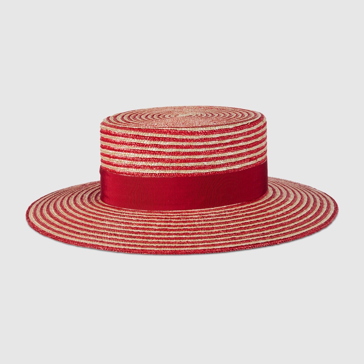 Soft accessories are reimagined throughout the Gucci design narrative. This wide-brimmed hat is crafted from beige and red striped raffia. A grosgrain trim with Double G embroidery enrich the accessory. - Beige and red striped raffia - Red grosgrain trim - Double G embroidery - Unlined - Made in Italy