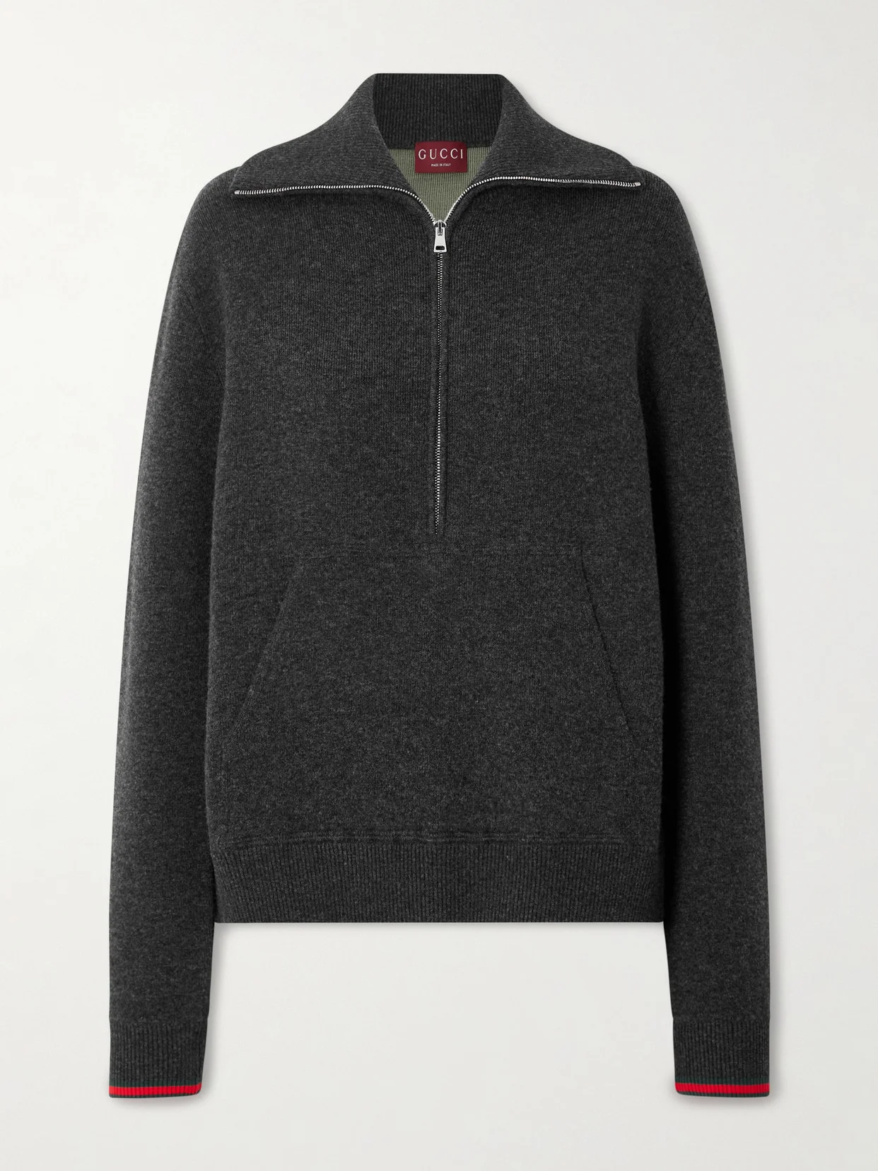 Gucci's sweater will quickly become your new go-to. Knitted in Italy with wool and cashmere in the blend for softness, it's detailed with the house's signature flashes of red and green at the cuffs. The zip looks cool left undone over tees and thin rollnecks.