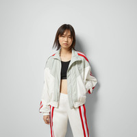 A relaxed attitude speaks volume as casual pieces become indispensable. Sweatshirts, hoodies, and t-shirts with drop shoulders, cropped lengths, and generous fits are adorned with signature embellishments. Presented in white and grey technical jersey, this zip sweatshirt is defined by a red and white Web and further embellished with an Interlocking G embroidered patch. - White and grey technical jersey - Red and white Web - Interlocking G embroidered patch - High neck - Dropped shoulder - Long balloon sleeves - Two side pockets - Elastic cuffs and hem - Rib trim - Zip closure - Length: 22", based on a size small - Made in Italy - The product shown in this image is a size small