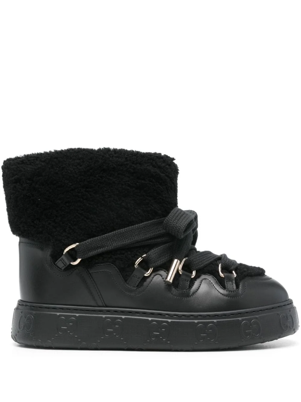 faux-shearling ankle boots Highlights - Black - Calf leather - Faux shearling - Front lace-up fastening - Round toe - Branded insole - Logo embossed rubber sole Made in Italy Composition Leather 100% SIZE & FIT Measurement CIRCUMFERENCE 13.38 in(34 cm) HEEL 1.57 in(4 cm) HEIGHT 5.51 in(14 cm) Sole height 1.37 in(3.5 cm)