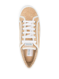 Tennis 1977 sneakers Highlights - Beige - Suede - Front lace-up fastening - All-over embossed logo print - Contrasting trim - Logo patch at the tongue - Round toe - Faux-shearling lining - Branded insole - Chunky rubber sole - Women's gucci sneakers fit large. for the most comfortable fit please select half a size down. Made in Italy Composition Sole: Rubber 100% Outer: Calf Suede 100% Lining: Wool 100% SIZE & FIT Measurement HEEL 1.77 in(4.5 cm) PLATFORM 1.77 in(4.5 cm)