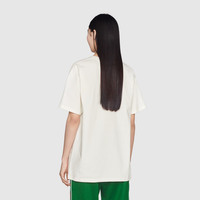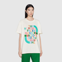 This T-shirt is part of The North Face x Gucci collection, a collaboration connecting two brands with similar history and values in celebration of the spirit of exploration. For this new chapter, the logo is presented in a multicolor variation. The North Face has a rich archive pushing innovation and breaking the rules in creating styles with unique and distinguishing design details. - White cotton jersey - The North Face x Gucci - Multicolor The North Face x Gucci logo print on the front - Crewneck - Oversize fit - Length: 28.5", based on a size small - Made in Italy - The product shown in this image is a size small