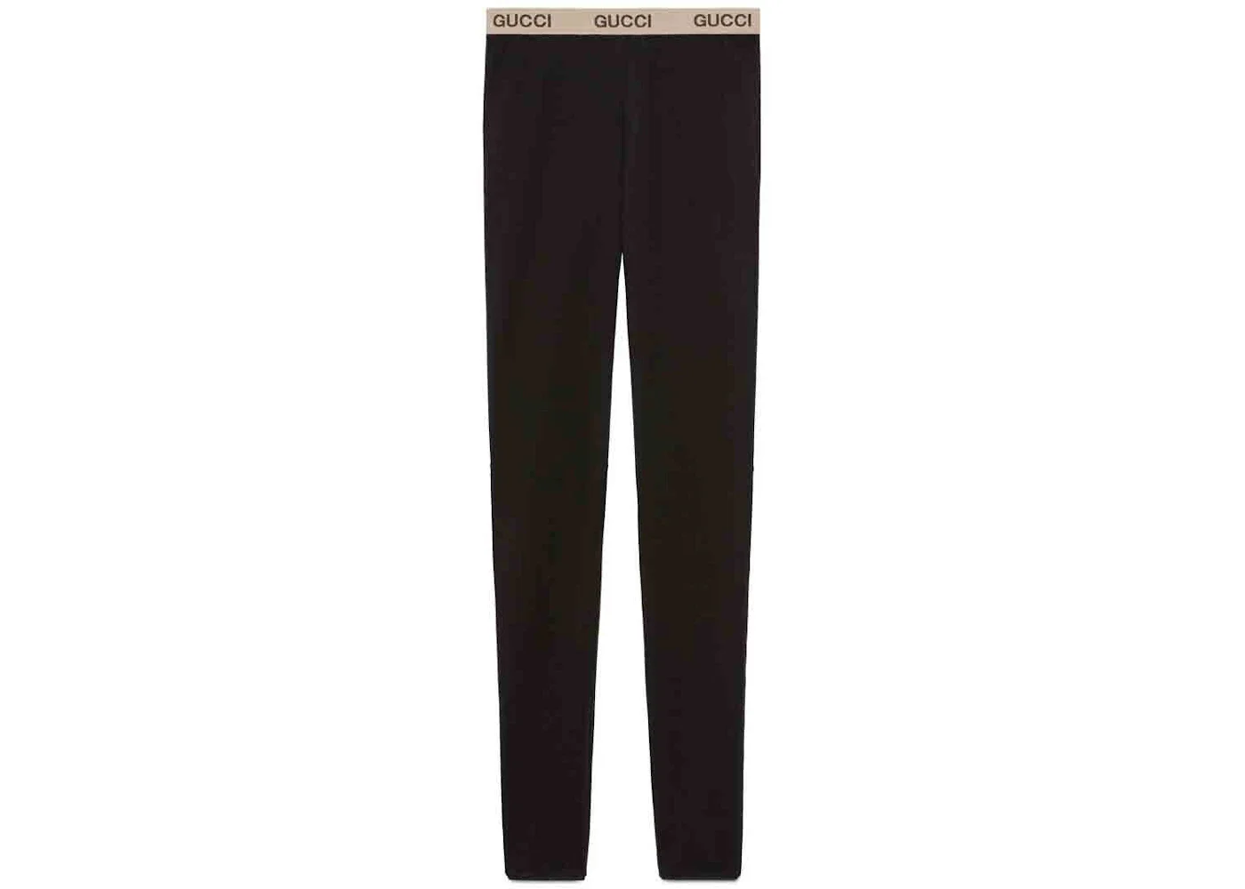 These jersey leggings are part of The North Face x Gucci collection, a collaboration connecting two brands with similar history and values in celebration of the spirit of exploration. The pieces are characterized by a selection of bright colors and prints featuring The North Face x Gucci logo, flowers and woodland-inspired motifs. - Black technical jersey - The North Face x Gucci Web logo embroidery - The North Face x Gucci - Elastic waistband with The North Face x Gucci logo - Made in Italy - The model is 5'9" tall. The product shown in this image is a size small