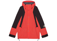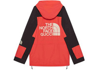 This red and black windbreaker jacket is part of The North Face x Gucci collection, a collaboration connecting two brands with similar history and values in celebration of the spirit of exploration. The pieces are characterized by a selection of bright colors and prints featuring The North Face x Gucci logo, flowers and woodland-inspired motifs. - Red and black lightweight techno cotton - The North Face x Gucci logo Web print on the back - The North Face x Gucci logo Web embroidery on the sleeve - Mesh lining - The North Face x Gucci - Fixed hood with drawstring - Drawstring at the hem - Snap buttons and zip closure - Length: 33", based on size medium - Made in Vietnam - The model is 5'8" tall. The product shown in this image is a size medium