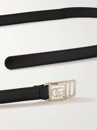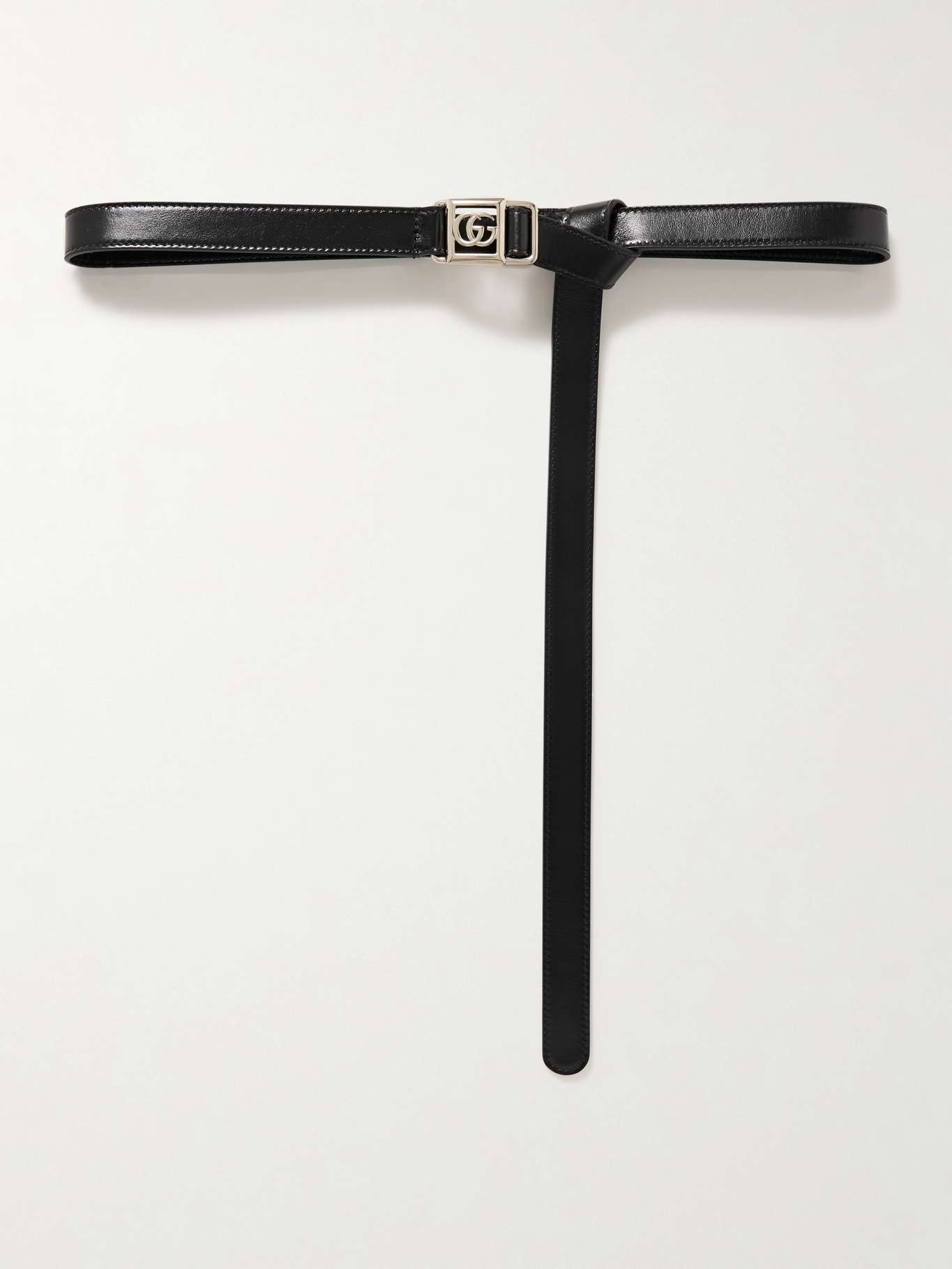 EDITORS'NOTES Gucci's belt is designed with a longer-than-usual length - the remaining slack is meant to be looped through once and left to dangle vertically. Made from glossy black leather, it's topped with a square buckle featuring the house's 'GG' emblem and has a skinny shape. Thread yours through tailoring or use it to cinch loose dresses. SIZE & FIT - Designed to be worn on the hips or waist - Measurements can be found in the link below DETAILS & CARE - Black leather - Buckle fastening