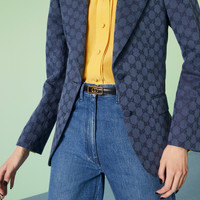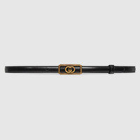 For Pre-Fall 2023, archival elements are reimagined in contemporary ways. Deepening this style's connection to the House's heritage, the black leather belt is completed with an Interlocking G buckle, adding a nod to the House Founder, Guccio Gucci. - Black leather - Gold-toned hardware - Interlocking G buckle - .6" width - Made in Italy - Can be worn as a waist belt. Sizing will differ based on where the belt is worn, please refer to the size guide to find your size.