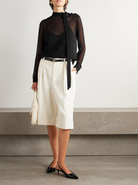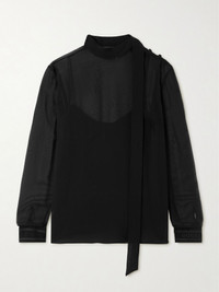Gucci's blouse is made from airy silk-georgette that flutters weightlessly in the breeze. It's cut for a relaxed fit, has dainty ties at the neck and is underpinned with a tonal cami. Tuck yours into denim or a leather skirt. Details & Care - Black silk-georgette - Button fastenings along shoulder - 100% silk - Dry clean