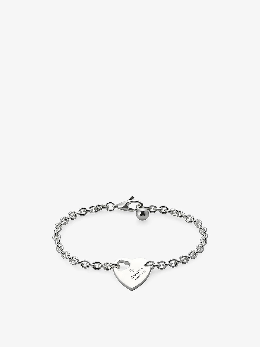 PRODUCT DETAILS - Gucci sterling-silver bracelet - 100% sterling silver - Clip-on fastening - Heart charm, engraved logo, polished finish - Chain type: cable - Made in Italy - Please use a soft, dry polishing cloth Ref: R04338822