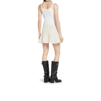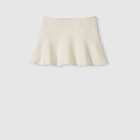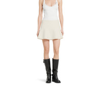 Coats, jackets, and skirts blend discreet elegance with refined details in the Pre-Fall 2025 collection. This wavy mini skirt appears in wool boucle with a bon-ton feel. - Off white wool boucle - Lined - Wavy skirt - Side zip closure - Mini length - Made in Italy