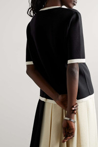 Two-tone embroidered wool-piqué top