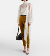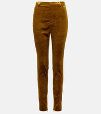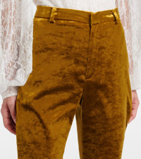 An iconic name within fashion on a global scale, Gucci was founded in Florence in 1921. These tapered pants are made in Italy from velvet in a striking metallic sheen. Product Details - Material: 55% viscose, 43% cotton, 2% elastane - Care instructions: dry clean - Made in Italy - Color: gold - Designer color name: Caramel Suede - Item color: yellow - Lining: 75% acetate, 25% silk - Contains non-textile parts of animal origin - Closure: zipper fly, button and hook fastenings - Belt loops - Item number: P01119260 Size & Fit - True to size - Non-stretchy fabric - Tapered leg - High-waisted - The model seen in the picture is 178cm-5'10" and wearing a size IT 40
