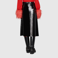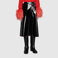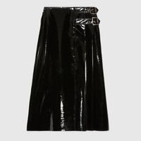 Inspired by the mysterious aura of the nightclubs' scene, the Creative Director explore the idea of dark sensuality with leather garments and vinyl-like fabrics. Unconventional ready-to-wear pieces explore the concept of fashion as a means of self-expression. - Black vinyl effect fabric - Buckles detail at the side - Mid-length - Zip closure - Length: 29.5", based on a size 40 (IT) - Made in Italy - The model is 5'7" tall. The product shown in this image is a size 40 (IT)