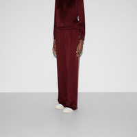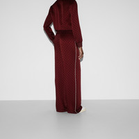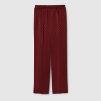 The Pre-Fall selections spotlight essential silhouettes with emblematic details, offering a modern take on the House's well-known codes and symbols. This contemporary pair of pants is presented in the signature Gucci Rosso Ancora red with a GG motif and matte-finish fabric. - Gucci Rosso Ancora red GG viscose jacquard with a matte effect - Contrast white piping at the sides - Elastic waistband with internal drawstring - Two side pockets - Pleats - Hips: 21.6 " based on a size S (IT) - Waist: 27.5 " based on a size S (IT) - Relaxed fit - Half waist: 13.8"; Half hips: 21.7"; Half hem width: 11.6" based on a size s - Made in Italy - The model is 5'8" and is wearing size small - Fabric: 55% Viscose, 45% Acetate - Details: 73% Acetate, 27% Silk - Pocket lining: 73% Acetate, 27% Silk