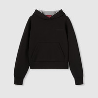 Signature styles have been re-envisioned in unexpected versions, juxtaposed with new details on tops, oversized shirts and leisurewear ensembles. This oversized hooded sweatshirt is made from viscose jersey and enriched with a Gucci embroidery. - Black double viscose jersey - Gucci embroidery - Fixed hood - Dropped shoulder - Pouch pocket - Shoulder drop: 23.2" based on a size S (IT) - Chest: 23.6 " based on a size S (IT) - Sleeves length: 21.6 " based on a size S (IT) - Oversize fit - Length: 20.6"; based on a size S - Made in Italy