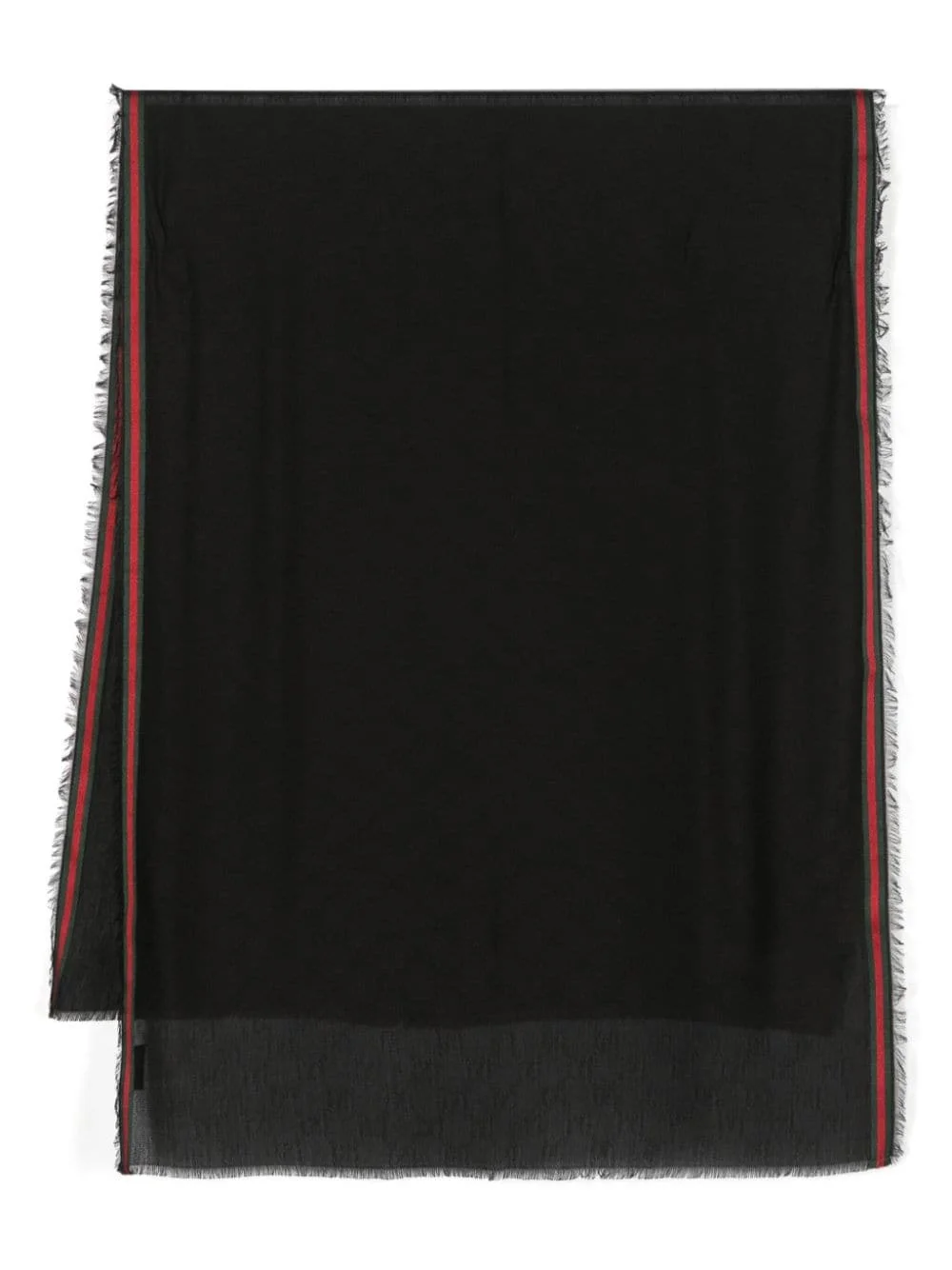 Web-stripe frayed scarf Highlights - Black - Silk-cotton blend - Signature web-stripe trim - Frayed edge - Wraparound style Made in Italy Composition Silk 62%, Cotton 38% SIZE & FIT Measurement LENGTH 70.86 in(180 cm) WIDTH 27.55 in(70 cm) Washing instructions Dry Clean Only
