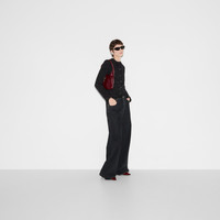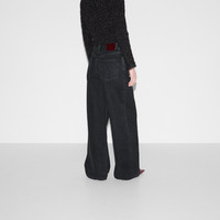 The Cruise 2025 collection introduces a fresh take on denim, with subtle details that elevate everyday looks. Crafted from a washed certified cotton denim, these wide leg pants are finished with a contrasting debossed Gucci label. - Black washed certified cotton denim - Debossed Gucci label - Five pocket style - Button and zip closure - Wide leg - Length: 46.8"; based on a size 25 (IT) - Leg opening: 12.5"; based on a size 25 (IT) - Made in Italy - The product shown in this image is a size 25 (IT)
