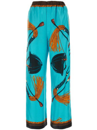 Equestrian-print silk trousers