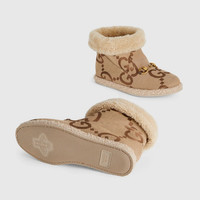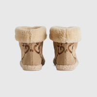 The House's logo symbols are reimagined each season, celebrated in different ways. Introduced for the Aria collection, the GG motif appears in a maximalist, jumbo-sized version. The contemporary take on the heritage material appears here as a pair of ankle boots with merino wool lining. - Beige and ebony jumbo GG canvas - Women's - Merino wool lining - Horsebit detail - Rubber sole - Flat - .2" height - Made in Italy