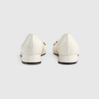 A square-toed ballet flat crafted from smooth white leather. This style presents the archival Horsebit in a shiny gold tone, recalling the House's equestrian heritage. - White leather - Women's - Horsebit detail - Leather sole - Low heel - 1" heel height - Made in Italy