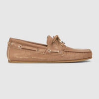 Drawing inspiration from the boat shoe, this modern take is crafted from washed-effect leather, embellished with a subtle Interlocking G detail on the laced upper. - Brown washed-effect leather - Light gold-toned hardware - Leather lining - Laced upper with Interlocking G hardware detail - Rubber sole - Flat - Height: 0.2"