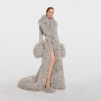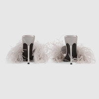 Introducing Spring Summer 2026. This evening style pays tribute to a glamorous era. Defined by a stiletto heel in silver-toned finish, it is crafted to achieve a soft, voluminous feather which speaks to La Famiglia's ready-to-wear design. - Grey ostrich feather - Tonal leather lining and insole - Round toe - Black leather sole - Silver-toned steel stiletto heel - High heel - Height: 4.3" - Made in Italy