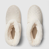Crafted in suede, this women's boot combines comfort and heritage. The soft merino wool lining offers warmth and luxury, while the distinctive GG rubber sole adds a bold, contemporary twist rooted in the House’s signature monogram. - White suede with gradient GG crystal motif - White leather trim - Merino wool lining - GG rubber sole - Flat - Made in Italy