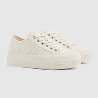 Expertly crafted from signature GG canvas, these trainers blend heritage design with modern aesthetics. The bold silhouette is elevated by a "Gucci" embossed rubber sole, ensuring a statement-making look and exceptional comfort. - White GG canvas - Women's - Contrasting trim - Fabric lining - Rubber toe cap - Padded Web detail - 'Gucci' rubber sole - Low heel - Height: 1.5" - Made in Spain