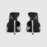 Introducing Spring Summer 2026. This style is featured in "La Bomba N.2" and "La Drama Queen" looks of La Famiglia. Defined by a stiletto heel in silver-toned finish, the evening style is crafted from GG crystal mesh on a silk satin base, and complements the ready-to-wear narrative with a sparkling note. - Grey GG crystal mesh - Black leather lining and insole - Round toe - Black leather outsole - Silver-toned steel stiletto heel - High heel - Height: 4.3" - Made in Italy