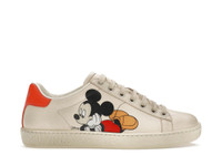 Mickey Mouse’s playful image defines this women's Ace leather sneaker. In celebration of the Lunar New Year, Disney’s legendary character appears throughout Gucci’s ready-to-wear and accessories for the Cruise 2020 collection, displayed as colorful prints, embroidered patches or jacquard motifs. - Disney x Gucci ©Disney - Ivory leather - Women's - Mickey Mouse print - Orange leather detail at the back - Treated for a vintage, distressed effect - Rubber sole - These shoes run big, we recommend sizing down one size - .8" height - Made in Italy - Because these laces are hand-treated for a vintage, distressed effect, each set will be unique