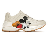 Mickey Mouse’s playful image defines the chunky soled design of the women's Rhyton sneaker in ivory leather. In celebration of the Lunar New Year, Disney’s legendary character appears throughout Gucci’s ready-to-wear and accessories for the Cruise 2020 collection, displayed as colorful prints, embroidered patches or jacquard motifs. - Disney x Gucci ©Disney - Ivory leather - Women's - Mickey Mouse print - Gucci label at the tongue - Rubber sole - 1.6" height - Made in Italy