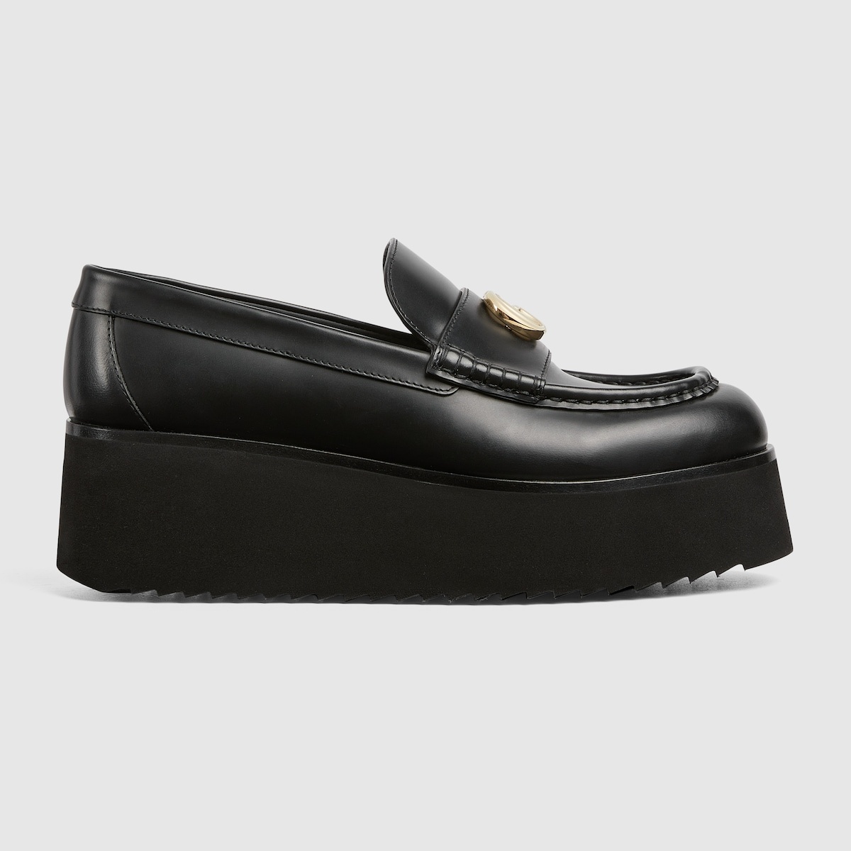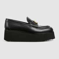 This modern loafer is defined by a rubber flatform sole that recalls the iconic shape of creeper shoes. The Double G logo adds a logo touch to this new version of an established silhouette. - Black leather - Women's - Light gold-toned hardware - Leather lining - Double G - Rubber flatform sole - Flat - Height: 2.1" at the back; 1.5" at the front - Made in Italy