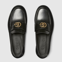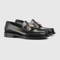 This loafer is crafted by soft and refined leather. The Double G logo adds a logo touch to this contemporary version of the loafer established silhouette. - Black leather - Women's - Light gold-toned hardware - Leather lining - Double G - Leather sole - Flat - Height: 0.5" - Made in Italy